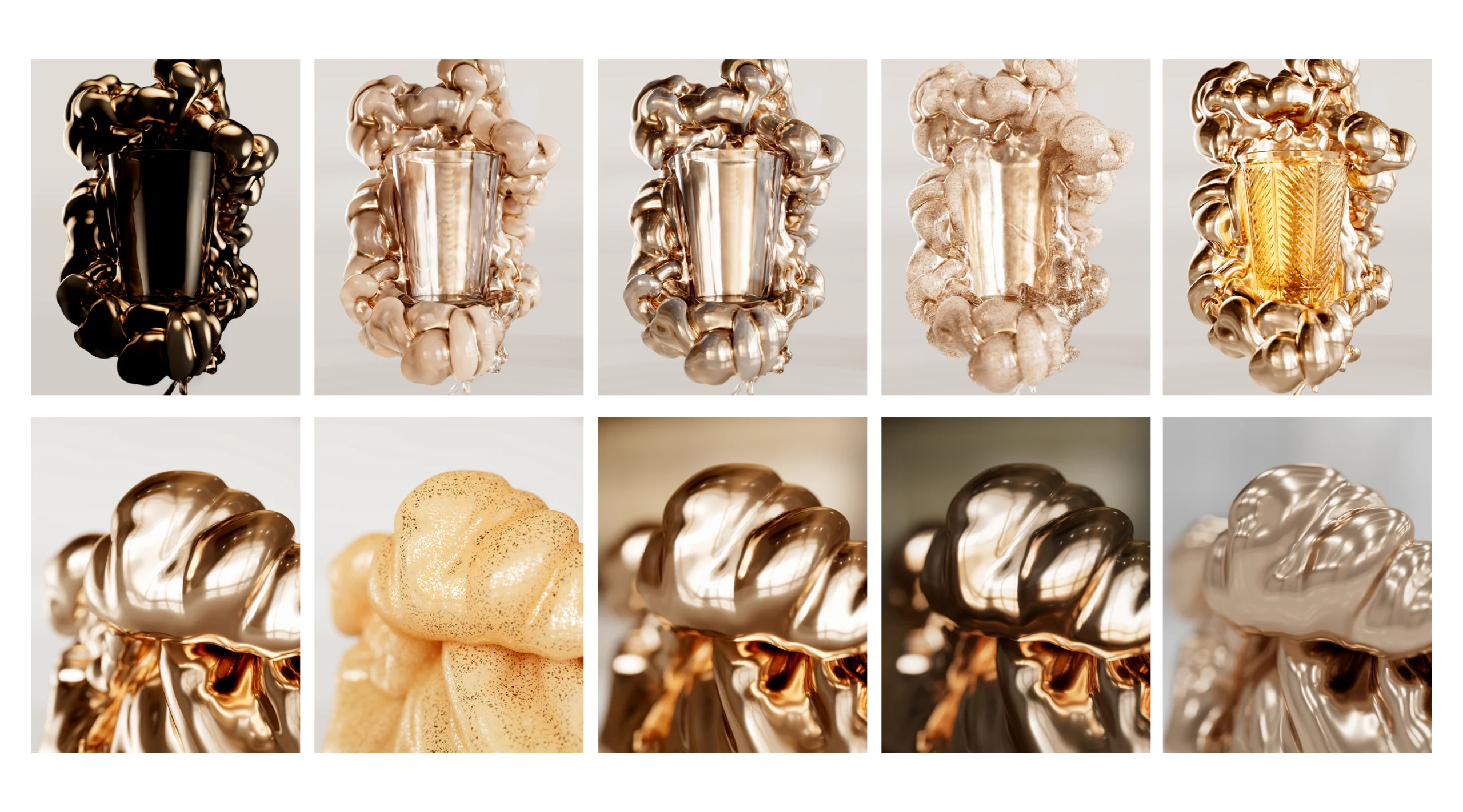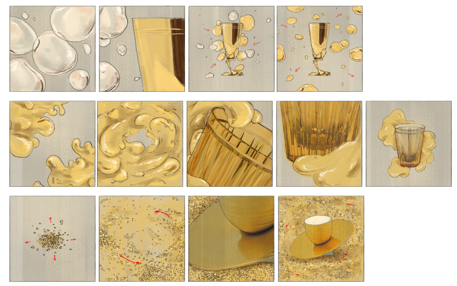 Chaque œuvre met en scène un objet emblématique, verre Dior, flûte Odiot, tasse JL Coquelet, révélé dans toute sa beauté et sa fonctionnalité. En mêlant mouvement, matière et poésie visuelle, ces créations réenchantent des objets du quotidien, souvent perçus comme purement décoratifs, en soulignant leur utilité et leur richesse culturelle.
